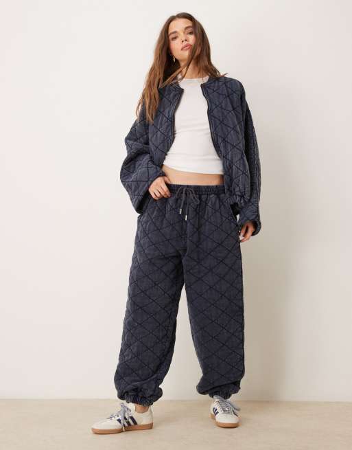 ASOS EDITION jersey quilted zip through jacket and oversized jogger co-ord in acid wash grey
