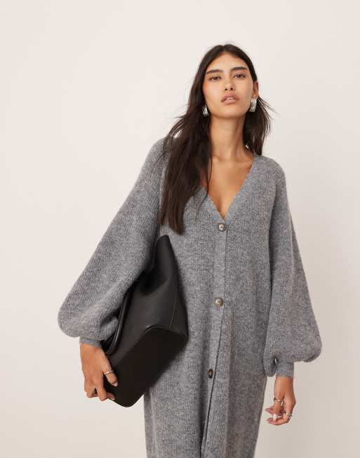 ASOS EDITION knit balloon sleeve button through midaxi dress in charcoal