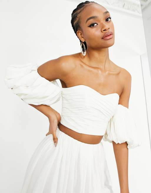 ASOS EDITION linen off shoulder pleated top in ivory