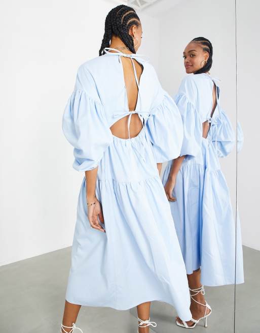 ASOS EDITION midaxi smock dress with tiers and tie back in pale blue