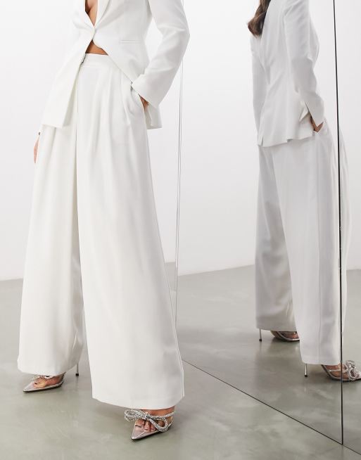 ASOS EDITION pleat detail wide leg trouser in ivory