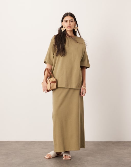 ASOS EDITION premium heavy weight jersey oversized t-shirt and maxi skirt in kha