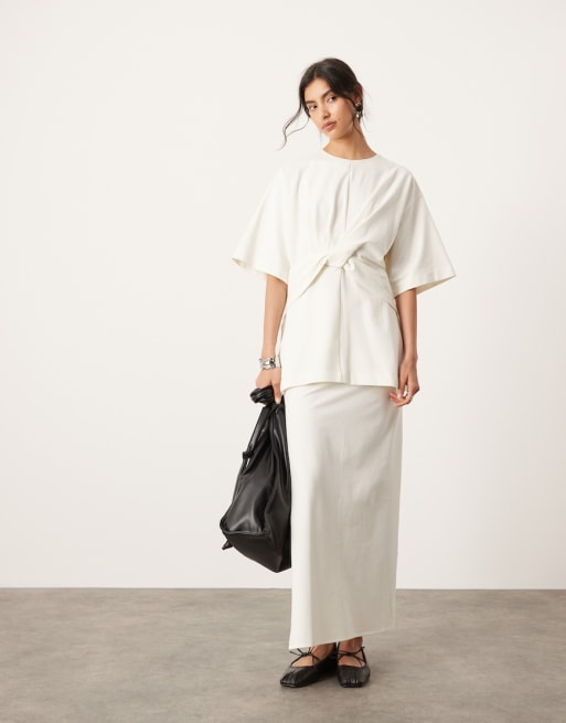 ASOS EDITION premium textured jersey twist detail tshirt and maxi skirt in cocon