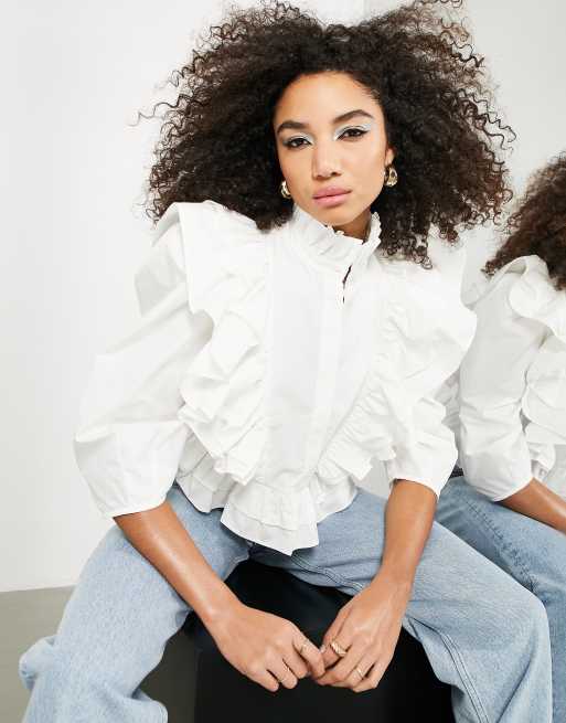 ASOS EDITION ruffle detail shirt with high neck in white