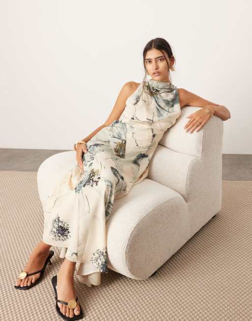 ASOS EDITION seam detail midi dress with full skirt in large floral print