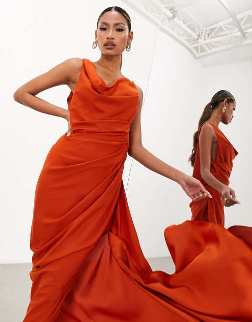 ASOS EDITION sleeveless cowl neck drape detail maxi dress in rust