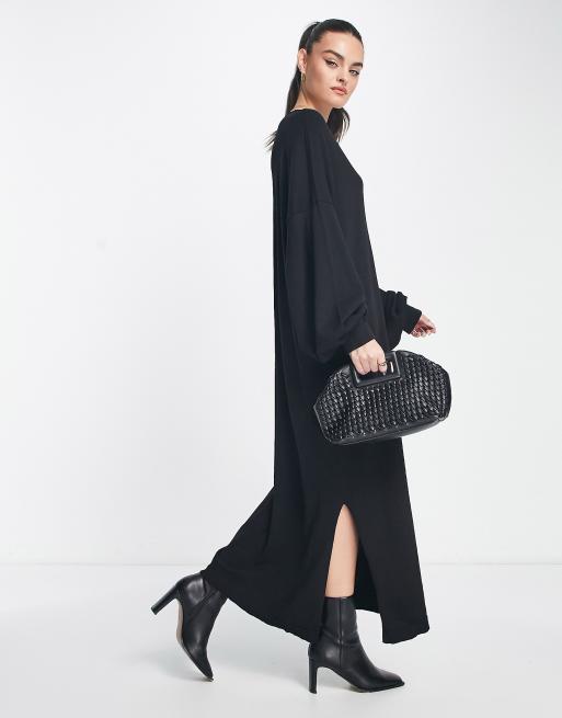 ASOS EDITION slouchy v neck midi jumper dress in black