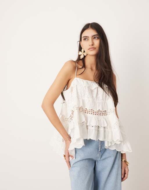 ASOS EDITION super full broderie cami top in white