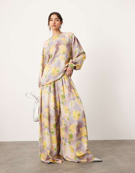 ASOS EDITION super wide leg drawstring waist trouser co-ord in blurred floral