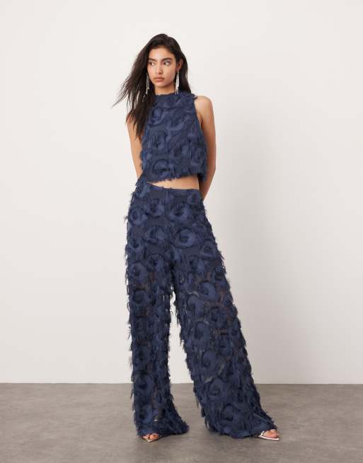 ASOS EDITION textured zip back racer top and wide leg trouser co-ord in blue