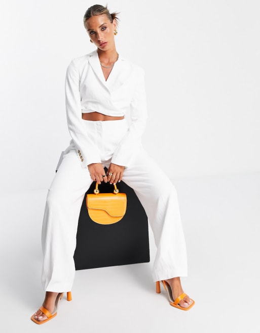 ASOS EDITION twist front crop blazer top & pleat front trouser in ivory - IVORY