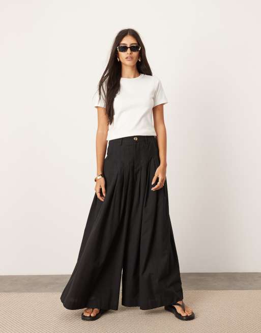 ASOS EDITION ultra wide leg linen mid rise pleat front trouser in black