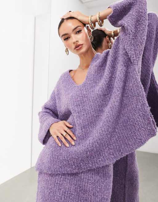 ASOS EDITION v neck fluffy knit jumper in purple