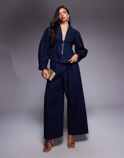 ASOS LUXE co-ord pleat front wide leg jeans in indigo