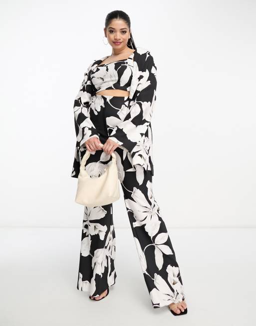 ASOS LUXE Curve co-ord flared suit trouser in black & white floral print