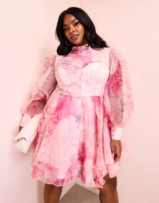 ASOS LUXE Curve organza swing dress with pussybow in floral print