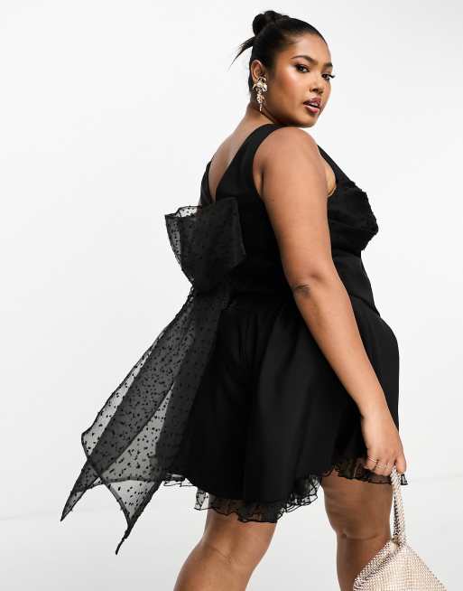ASOS LUXE Curve tailored co-ord dobby cupped waist coat with bow back detail in black