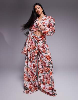 ASOS LUXE linen look cropped tailored blazer and linen look tailored wide leg trouser co-ord in tapestry floral