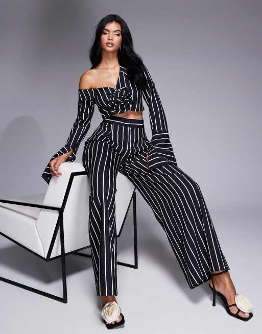 ASOS LUXE striped co-ord wide leg trouser in black and white