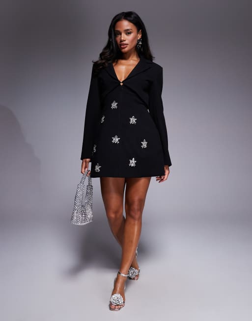 ASOS LUXE structured tailored embellished long sleeve dress in black