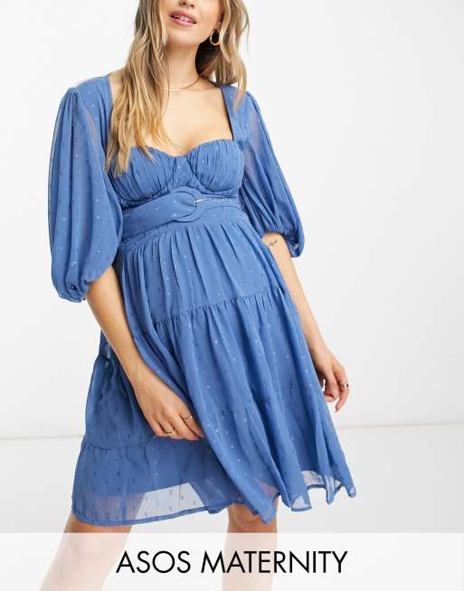 ASOS DESIGN Maternity belted mini dress with blouson sleeve with belt in blue