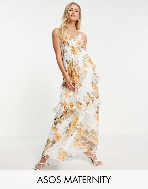ASOS DESIGN Maternity cami maxi dress with open back and circle trim in floral print