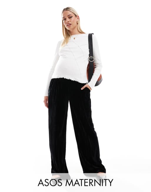 ASOS DESIGN Maternity crinkle velvet pull on trouser in black