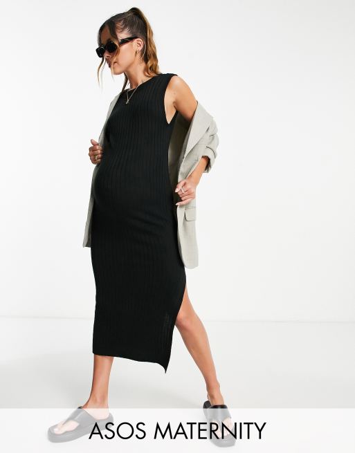 ASOS DESIGN Maternity knitted maxi dress in wide rib with low back detail in black