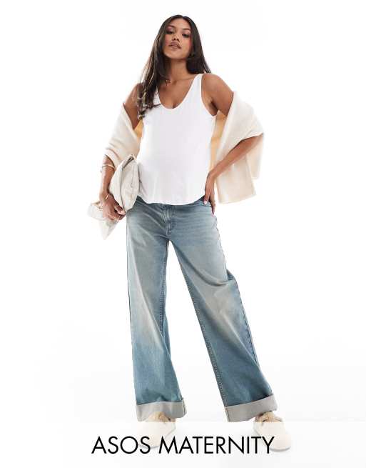 ASOS DESIGN Maternity loose jeans with deep turn up cuff in pale wash