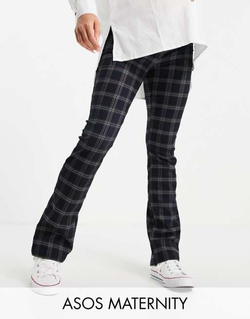 ASOS DESIGN Maternity low rise split hem flare in navy check bengaline