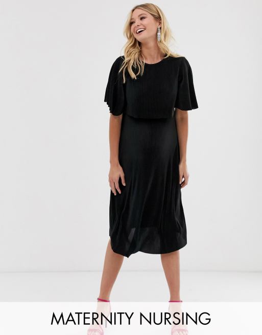 ASOS DESIGN Maternity Nursing crop top plisse midi dress in black