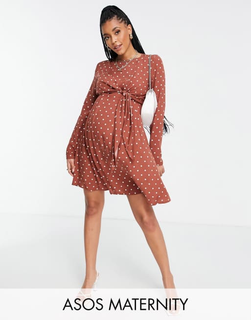 ASOS DESIGN Maternity Nursing mini wrap dress with long sleeves in rust spot