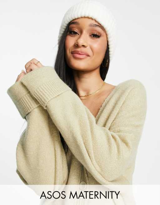 ASOS DESIGN Maternity oversized cardigan with turnback cuff and pockets in oatmeal