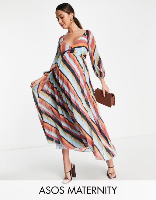 ASOS DESIGN Maternity pleated wrap midi dress in multi stripe