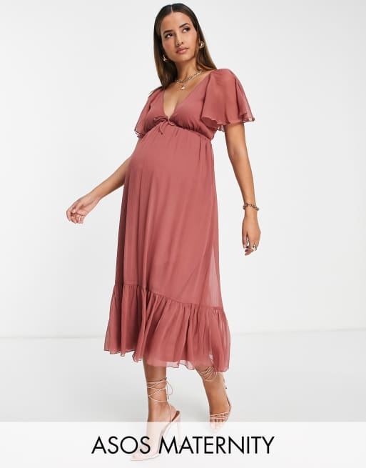 ASOS DESIGN Maternity soft tiered midi dress with tie front in rose