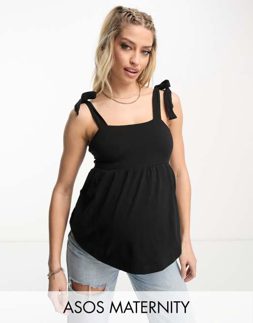ASOS DESIGN Maternity tie strap sun top with pephem in black