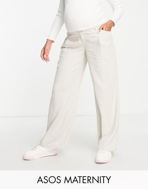 ASOS DESIGN Maternity wide leg trouser with linen in oatmeal