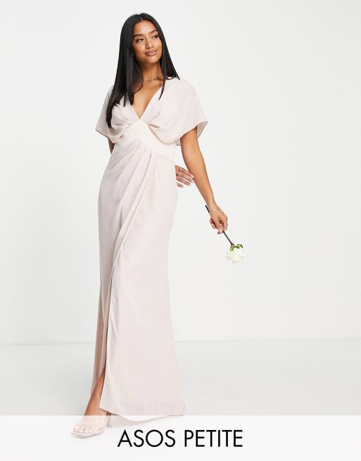 ASOS DESIGN Petite Bridesmaid blouson sleeve maxi dress with satin chevron waist band and button back in blush