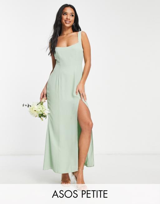 ASOS DESIGN Petite bridesmaid sweetheart button back detail maxi dress in sage