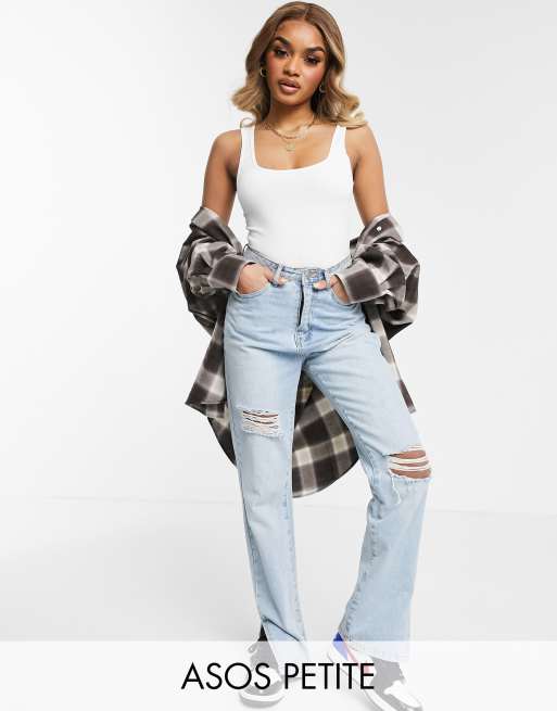 ASOS DESIGN Petite cotton scoop neck vest bodysuit in white - WHITE