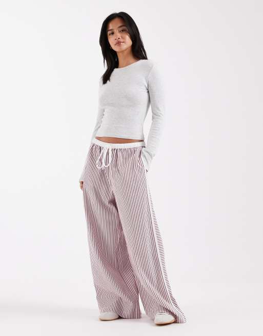 ASOS DESIGN Petite crinkle tipped pull on trousers with tie in pink stripe