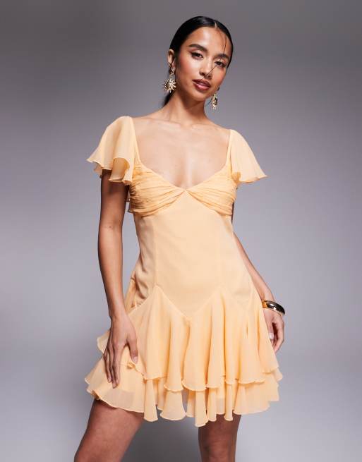 ASOS DESIGN Petite dropped waist full skirt mini dress in pale orange