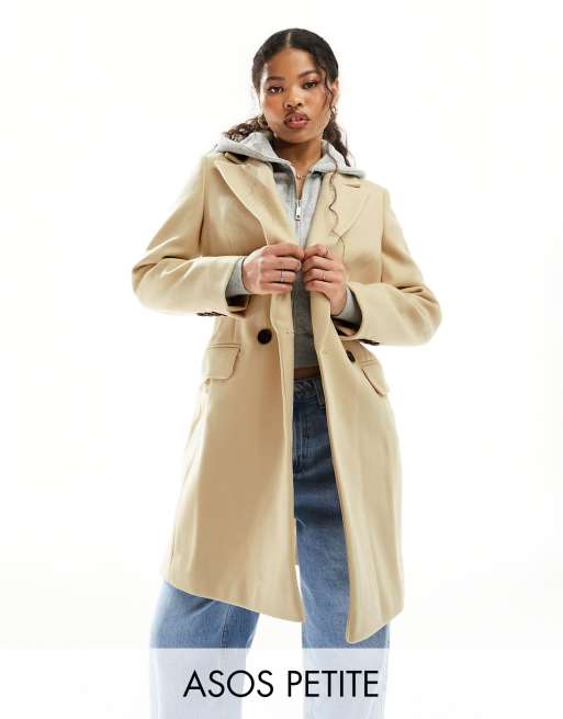 ASOS DESIGN Petite fitted mid length formal coat in camel