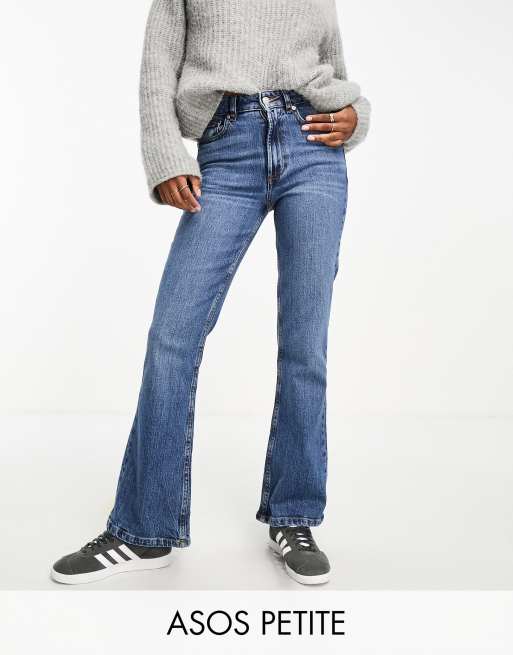 ASOS DESIGN Petite flared jeans in mid blue