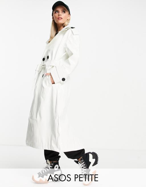 ASOS DESIGN Petite glossy patent hooded trench coat in cream