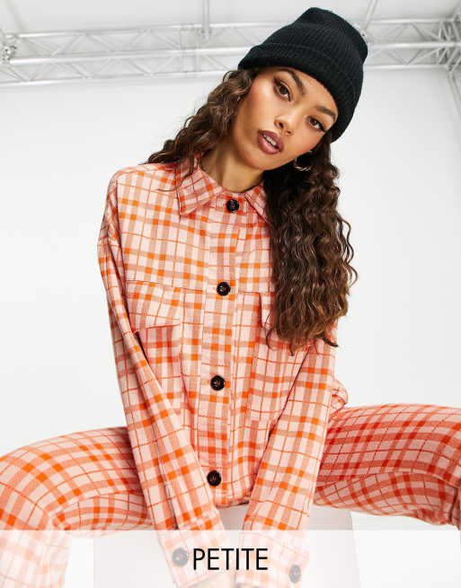 ASOS DESIGN Petite jersey crop suit Jacket in orange check