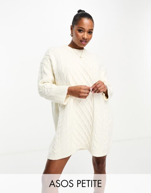 ASOS DESIGN Petite knitted cable mini jumper dress in cream