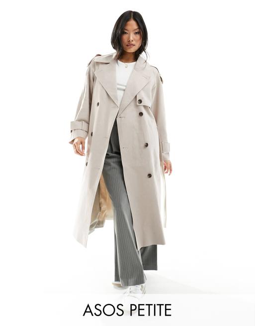 ASOS DESIGN Petite linen mix trench coat in stone