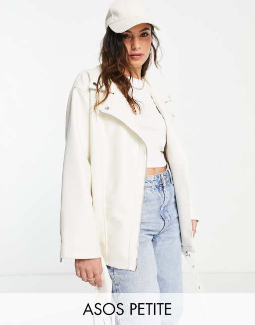 ASOS DESIGN Petite Longline oversized faux leather biker jacket in white