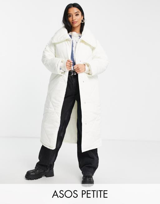 ASOS DESIGN Petite oversized hero quilted maxi coat in cream